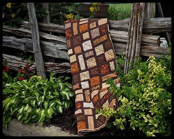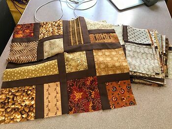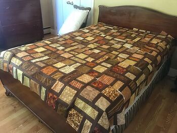 Blocks laid out on my mother's spare bed. I switched them around many times to get a layout I was happy with.
