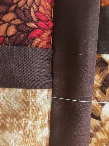 Two main block sections pinned and ready to be stitched. I tried to mix them up to give good fabric variation in each block. Although not perfect, I am happy with final selection.